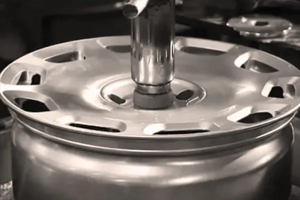 鋁圈的外圈也就是RIM的部分,鍛造出來後大約為圓盤狀,還要經過旋型機的擠壓與拉伸,才能成為中空的圓筒狀,而旋型的過程也會再次擠壓鋁圈外圈,讓分子密度再次提高,強度更好。